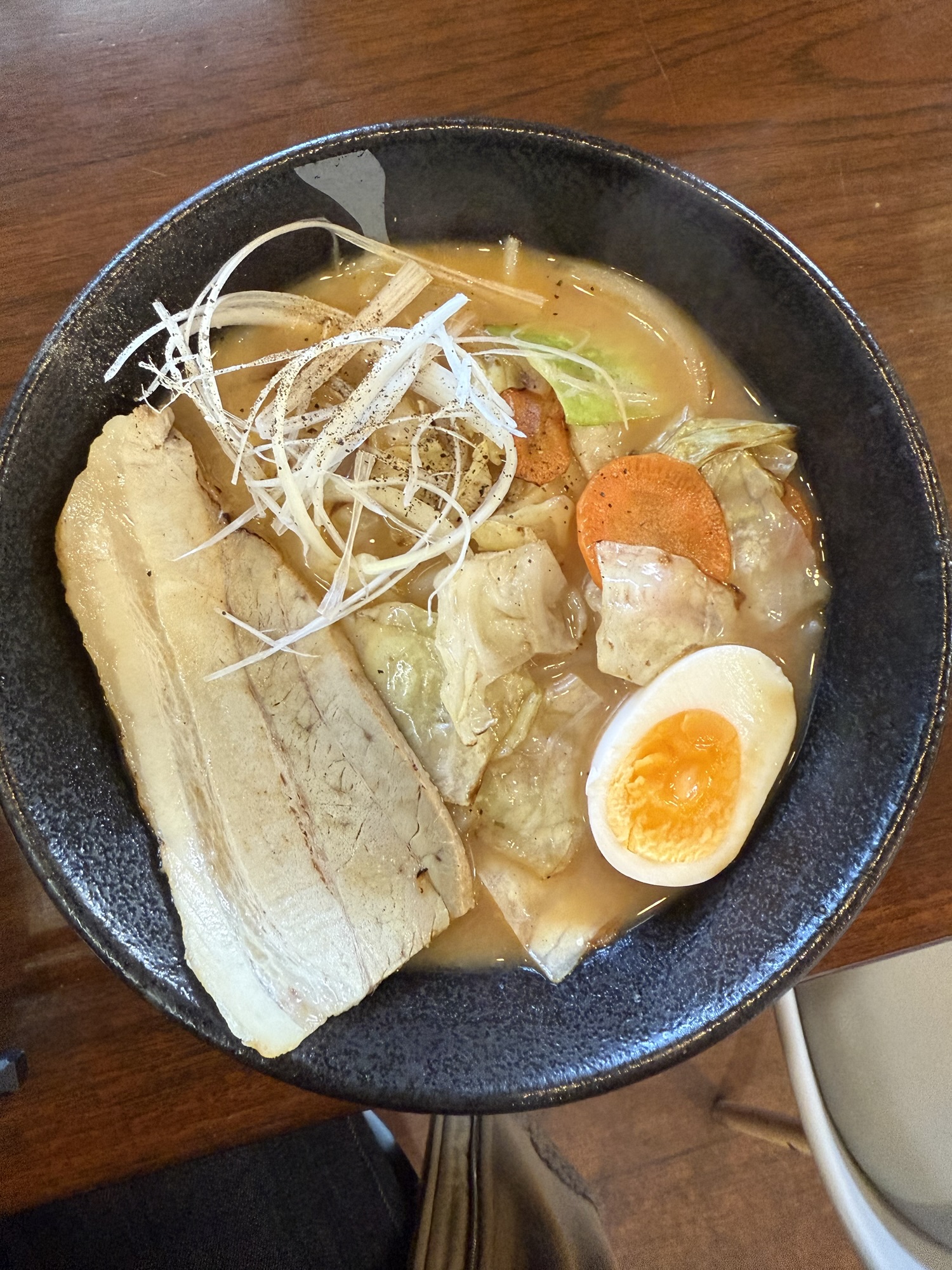 今回いただいた味噌ラーメンは、濃厚で深みのある味噌スープに、野菜の甘みがしっかり染み出していて、